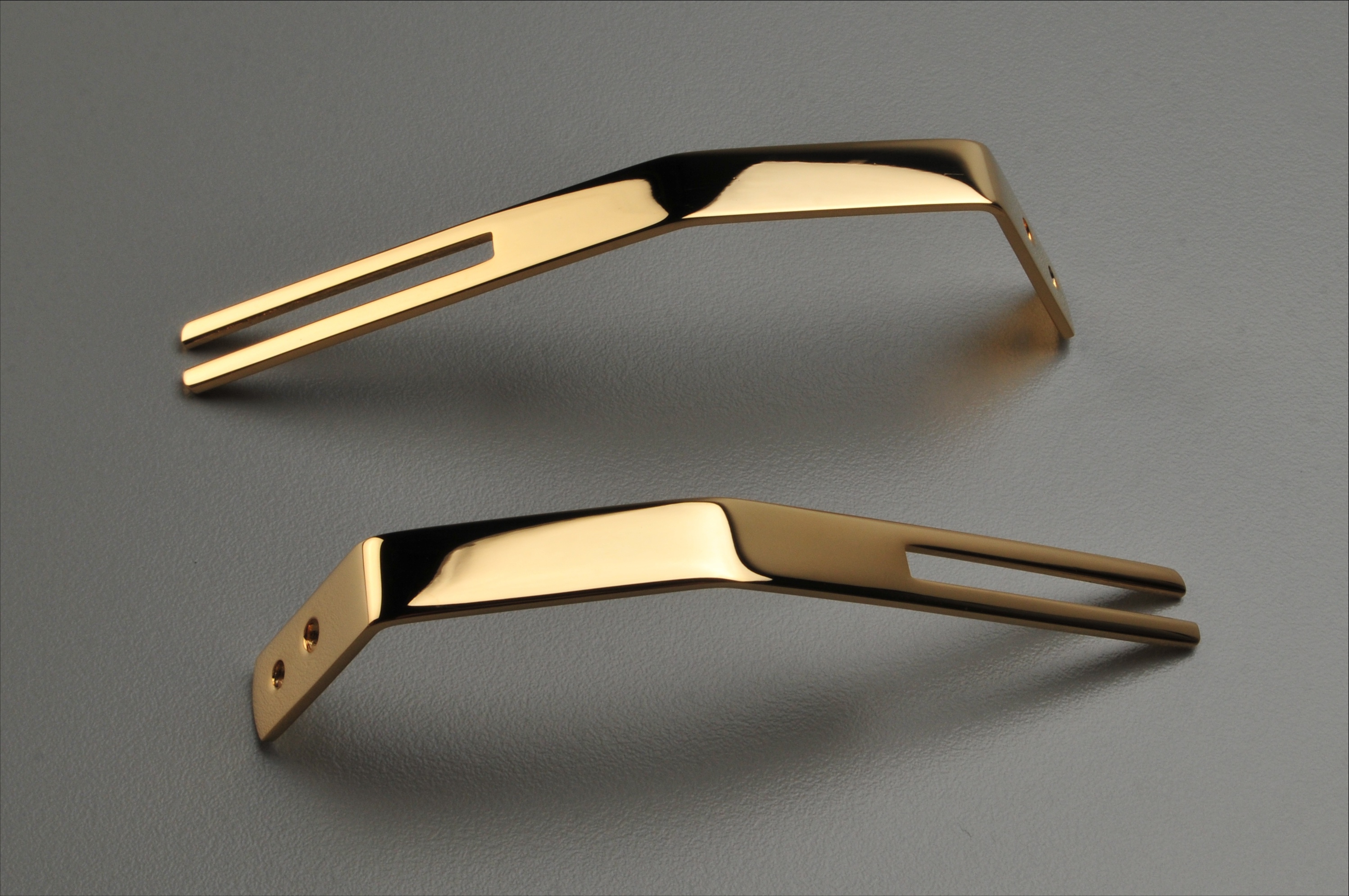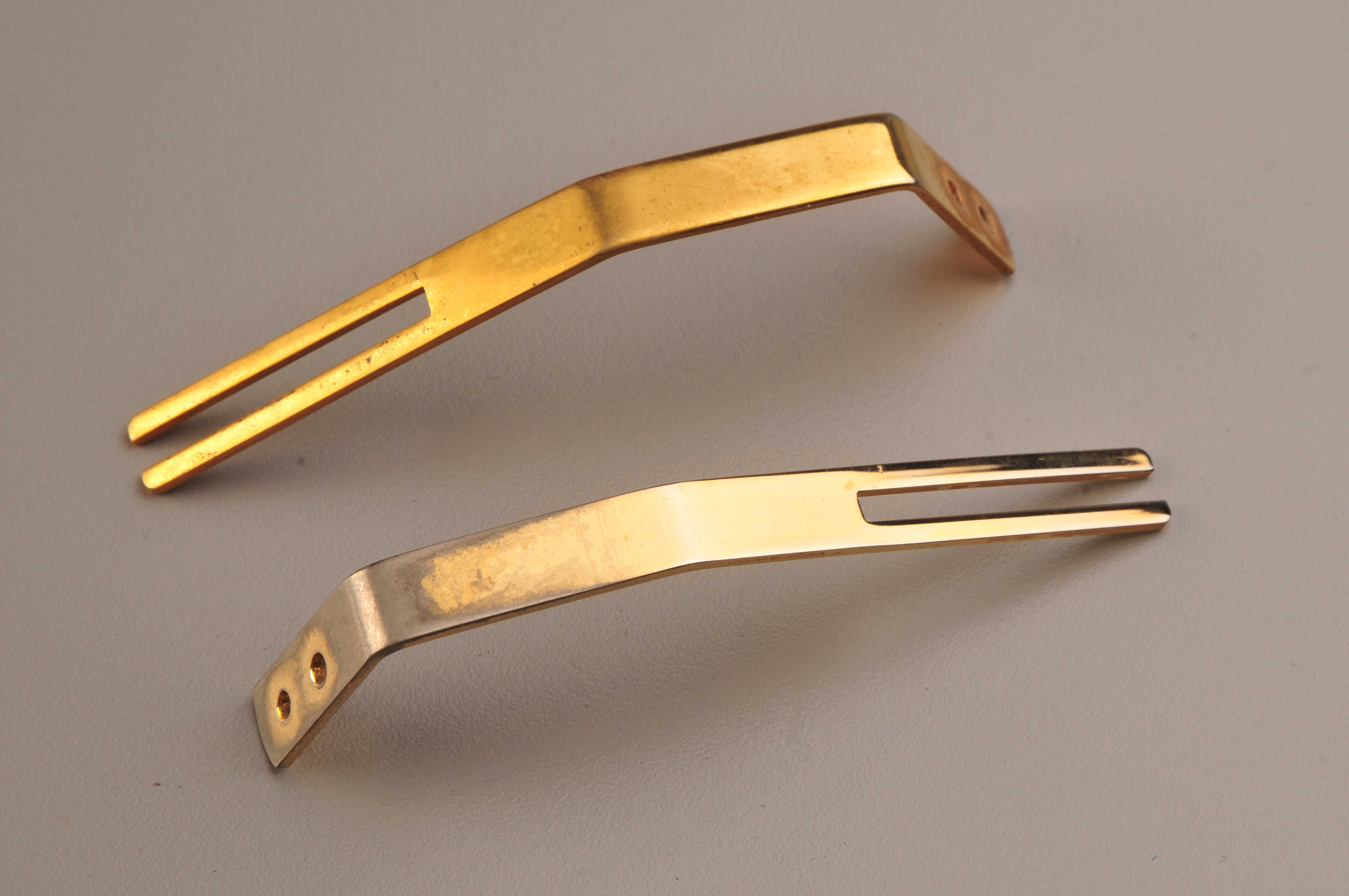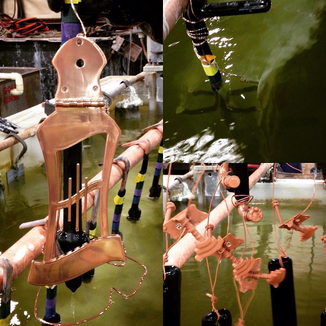 Because our parent company (Advanced Plating) is a chrome plating facility, we also offer full plating and restoration services for many companies in the music industry. We recently received these vintage Hagstrom pieces from a customer for full restoration. We first start by stripping off any old plating and grime, returning them to their natural state. Then we fill in any imperfections and polish the parts to get them ready for re-plating which in this case is 24K Gold.