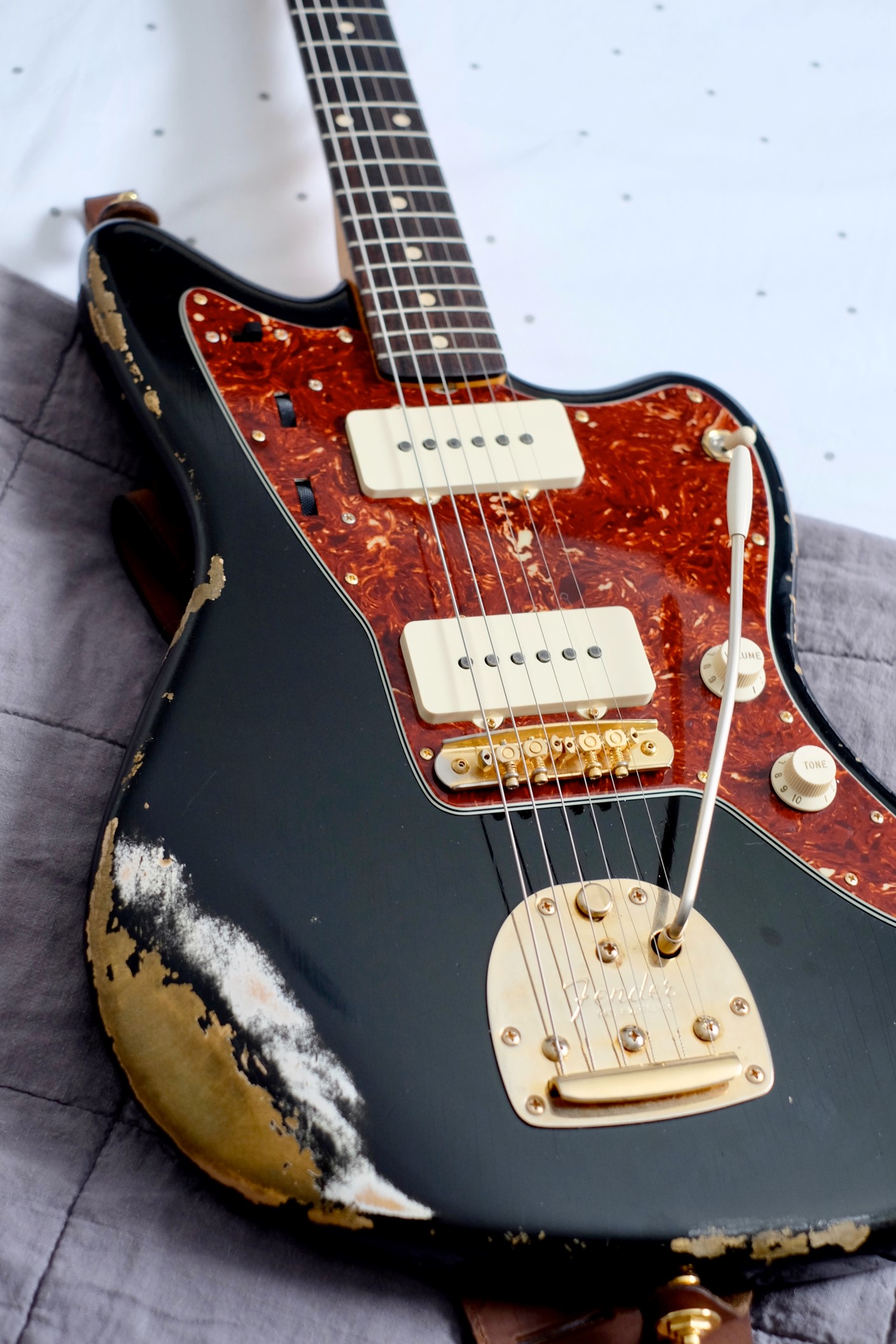 Marc sent us a Mastery bridge that he bought for his vintage Fender Jazzmaster. Mastery bridges are stainless steel and he wanted it to look the rest of his guitar. Our tech used his expertise to authentically age this part to match the look of a worn gold plated bridge, all the way down to the nickel plating.